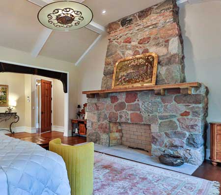 At the heart of the design is the original stone fireplace in the main living room and primary suite. This iconic feature was carefully preserved and restored, now standing as bold focal points that honors the lodge’s rustic origins while anchoring the new, modern interior.